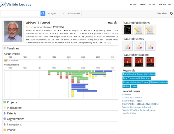 Visible Legacy shows your papers, projects, and collaborations as a map and over time. Visible legacy Navigator and widgets are used by industry, sponsors, and other researchers to find innovations and collaborators. Claim your page to curate what we have gleaned from public sources. Once verified, you can use your account to set featured works, select preferred image and description, and add URLs. It's easy and fast.